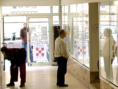 Jonglage (Andy Springer, 2005)![]() Musikclown (Andy Springer, 2005) ![]() Feuerspeier (Andy Springer, 2005) ![]() Besucher der Ausstellung ![]() gerahmte Arbeiten und Presseartikel |