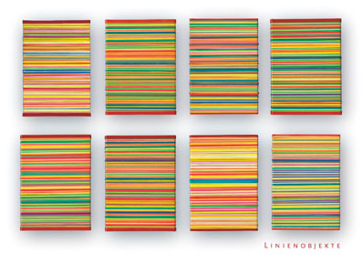 Kirsten Delrieux Linienobjekte Artikel vom 24.11.2005 von Andy Springer Seit etwa einem Jahr beschäftigt sie die Linie als Objekt ihrer künstlerischen Auseinandersetzung und kann damit in der Tradition Leo Erbs gesehen werden, der in den 50er Jahren den Begriff der Linienobjekte prägte. Obwohl also auch eine Hommage an ihn, sind Kirsten Delrieux Arbeiten aus eigener Beschäftigung mit der Objekthaftigkeit von Linearität entstanden. Am Anfang steht hierbei das gelenkte Arbeiten: Farbauswahl und deren Zusammenstellung. Diesem Stadium folgt das durch den kreativen Zufall gelenkte Eingreifen, die Gummiringe werden gewählt und verdichten sich. Der Prozess bestimmt das Ergebnis, fasst die junge Künstlerin ihr Vorgehen zusammen. Stets setzt dieses prozessuale Entfalten ihrer Arbeiten sie selbst in Erstaunen und in eine erregte Erwartungshaltung. Es entstehen zunächst sehr bunte Arbeiten. Die logische Konsequenz aus dieser ersten Schaffensphase war sodann die Farbreduktion. Dazu erläutert sie: Momentan arbeite ich sehr streng, mit wenigen Farben. Ausschließlich Weiß, Schwarz und Braun in ganz streng wiederkehrenden Rhythmen entwickeln die Arbeiten Kirsten Delrieux eine Konzentration auf die Wesenhaftigekeit Linearität in zarter Abstufung. Der Linie gilt ihr ausschließliches Interesse. Auch reift derzeit der Gedanke an eine malerische Umsetzung. So steht eine Fortführung der künstlerischen Auseinandersetzung zu Erwarten. ![]() www.kirsten-delrieux.de |
